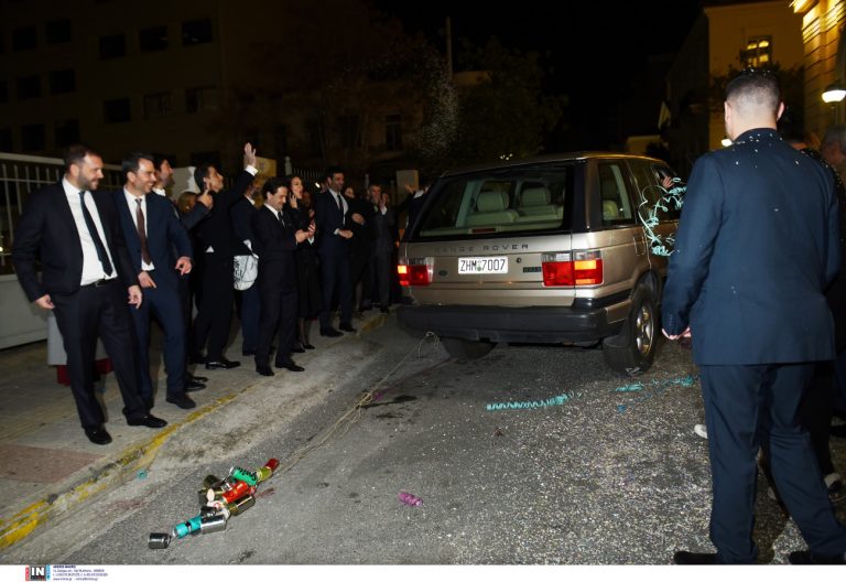 Όπως είναι εμφανές από τις φωτογραφίες, το ζευγάρι έφυγε με το νυφικό αυτοκίνητο, με τα δεμένα τενεκεδάκια του και όλα τα σχετικά έθιμα μπορούμε να πούμε πως είχαν την τιμητική τους.