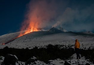 Την Τρίτη 11 Φεβρουαρίου η Αίτνα «ξύπνησε» για ακόμα μία φορά και χάρισε ιδιαίτερες εικόνες, με τη λάβα να αναβλύζει πάνω στο χιόνι χωρίς, ωστόσο, να προκληθεί οποιαδήποτε ανησυχία για τις συνέπειες.