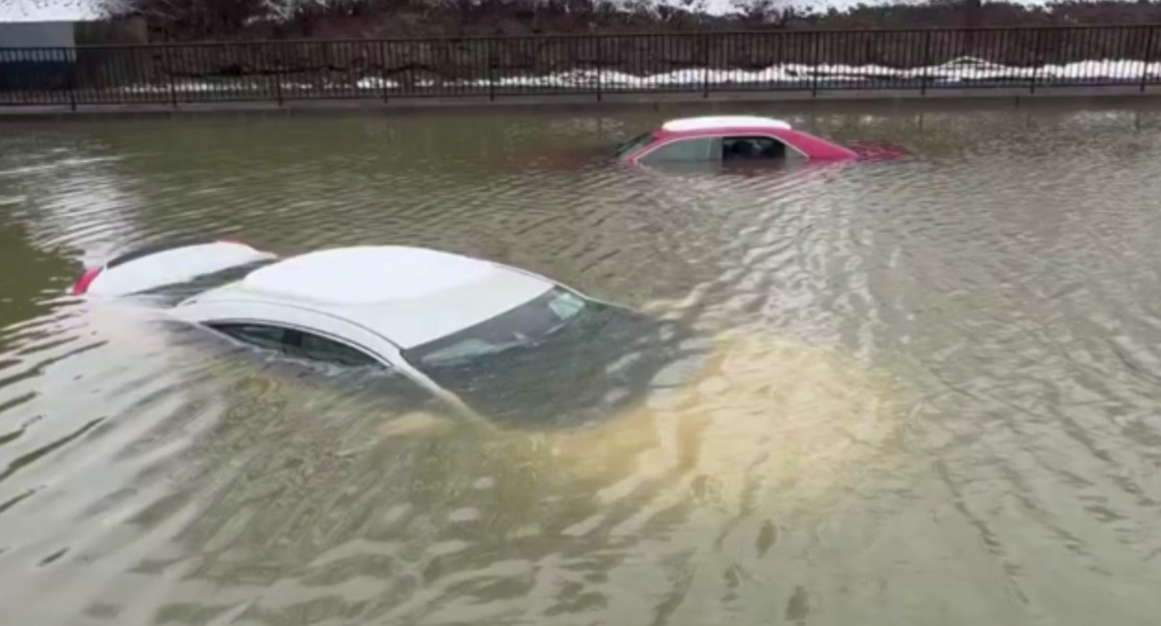 Η έντονη βροχόπτωση προκάλεσε την ταχεία άνοδο της στάθμης του νερού των ποταμών ενώ τα αυτοκίνητα σχεδόν καλύφθηκαν από τα νερά, όπως δείχνουν οι εικόνες που δημοσιεύθηκαν στο διαδίκτυο.