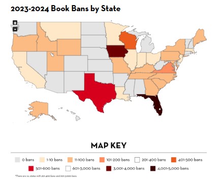 Σύμφωνα με τα στοιχεία της PEN America, ενός μη κερδοσκοπικού οργανισμού που ασχολείται με την ελευθερία του λόγου και την προώθηση των ανθρώπινων δικαιωμάτων μέσω της λογοτεχνίας στις ΗΠΑ, τα απαγορευμένα βιβλία στη χώρα ανέρχονται σε περισσότερα από 16.000 από το 2021 έως σήμερα, αριθμός που όπως αναφέρουν χαρακτηριστικά δεν καταγράφηκε ούτε κατά τη σκοτεινή περίοδο του Μακαρθισμού.