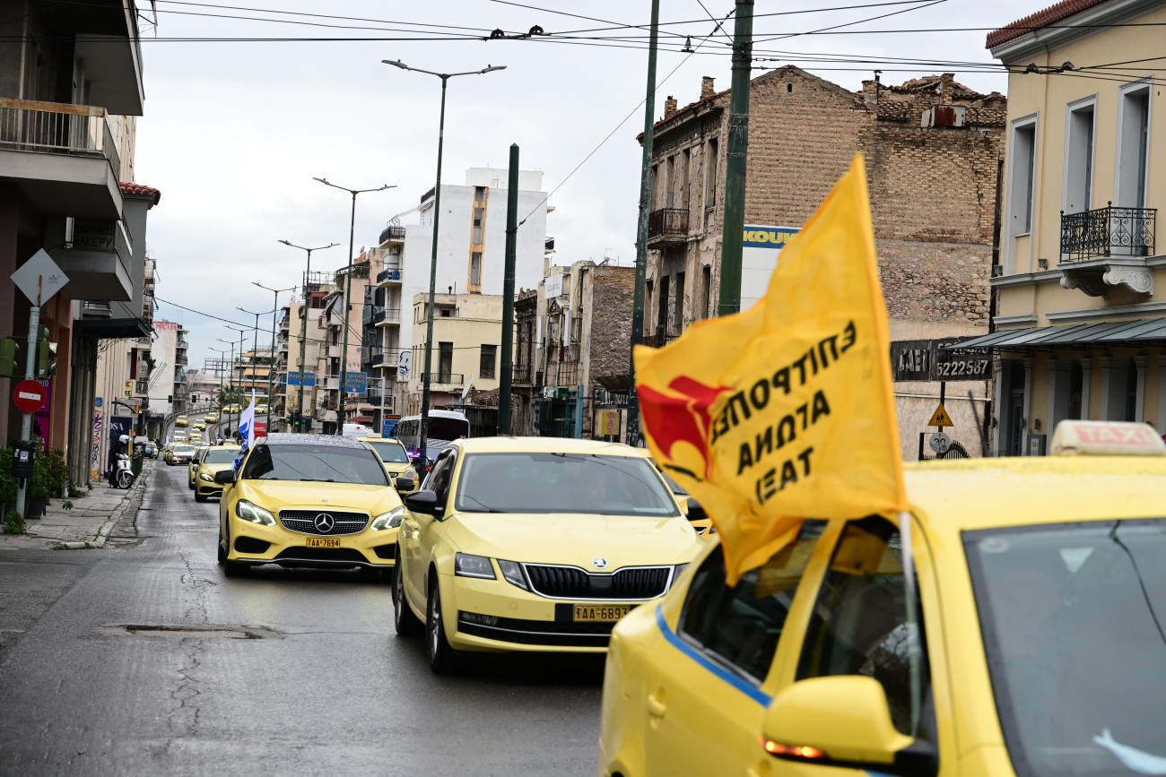 Η πορεία των επαγγελματιών αυτοκινητιστών βρίσκεται σε εξέλιξη, με τα ταξί να διέρχονται από κεντρικούς δρόμους του Λεκανοπεδίου.