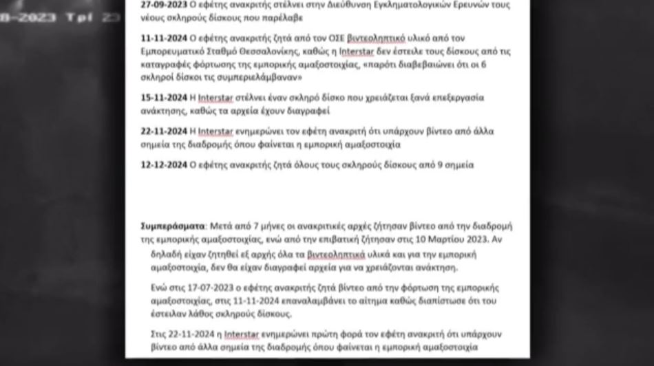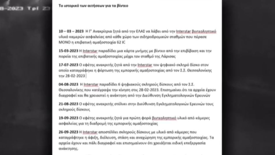 Λίγο νωρίτερα, στις 17/7/23 -πάλι όμως με σημαντική καθυστέρηση- είχε ζητήσει τα βίντεο από την φόρτωση της εμπορικής αμαξοστοιχίας.
