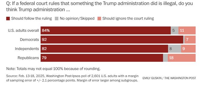 Οι Αμερικανοί είναι επίσης ξεκάθαροι για το τι πρέπει να κάνει ο πρόεδρος εάν ένα ομοσπονδιακό δικαστήριο αποφανθεί πως έχει κάνει κάτι παράνομο.