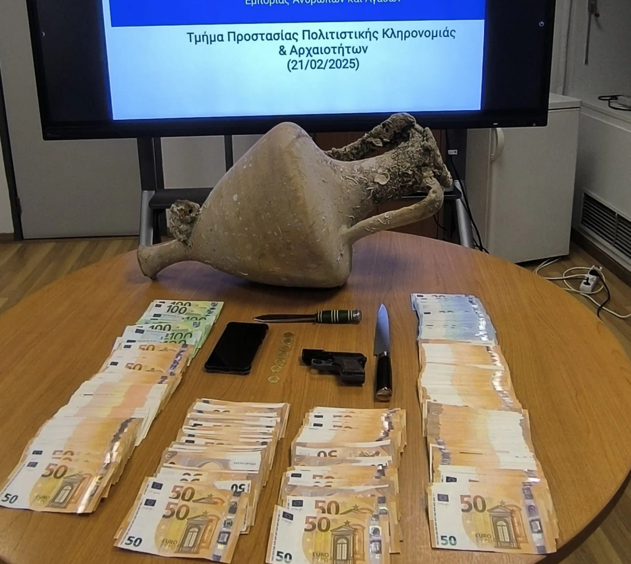 Σύμφωνα με την ΕΛ.ΑΣ, η διερεύνηση της υπόθεσης ξεκίνησε ύστερα από τον εντοπισμό από την υποδιεύθυνση Καταπολέμησης Διακίνησης και Εμπορίας Ανθρώπων και Αγαθών της Διεύθυνσης Αντιμετώπισης Οργανωμένου Εγκλήματος αγγελίας σε ιστοσελίδα, με την οποία είχε διατεθεί προς πώληση αρχαίος οξυπύθμενος αμφορέας.