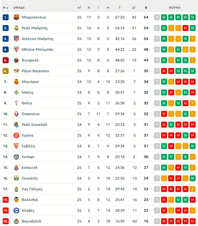 Το… θρίλερ στην κορυφή της La Liga συνεχίζεται, μετά την εντός έδρας νίκη της Ρεάλ Μαδρίτης με 2-0 επί της Χιρόνα, στο πλαίσιο της 25ης αγωνιστικής του ισπανικού πρωταθλήματος. Με το αποτέλεσμα αυτό οι «μερένγκες» έπιασαν ξανά την Μπαρτσελόνα στην πρώτη θέση με 54 βαθμούς, ενώ η Ατλέτικο Μαδρίτης ακολουθεί με 53.