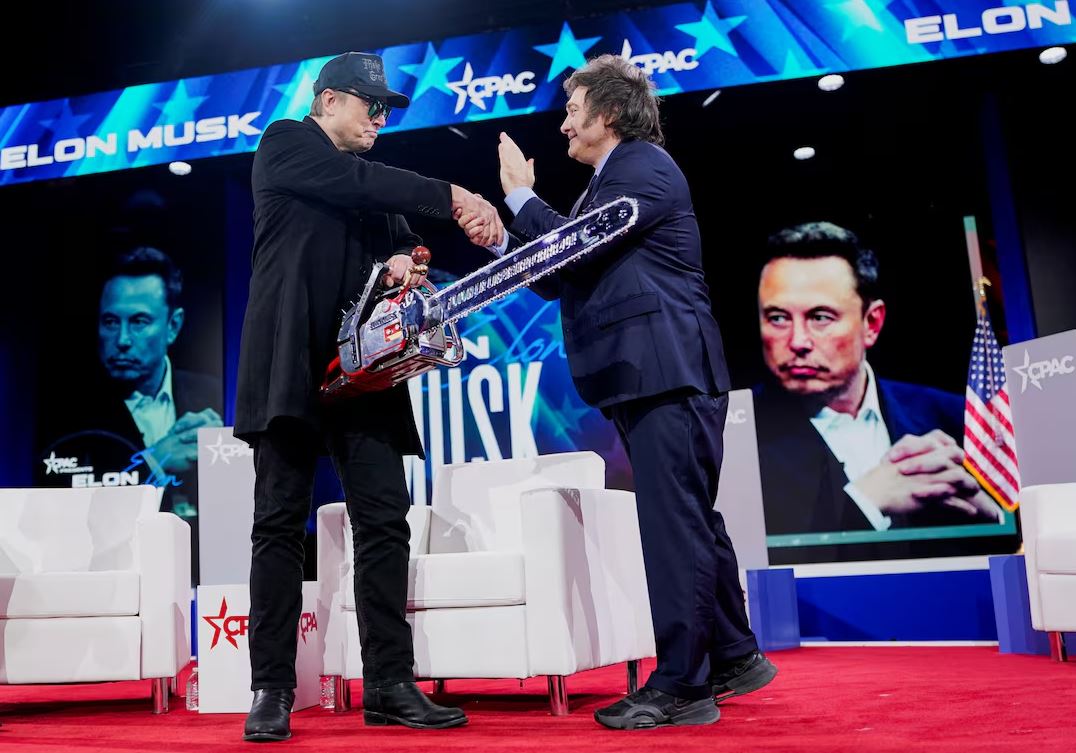 Ο Μασκ έγινε πρωτοσέλιδο όταν έφερε στη σκηνή ένα αλυσοπρίονο, δώρο που του έκανε ο πρόεδρος της Αργεντινής Χαβιέρ Μίλεϊ, για μια συνέντευξη. Το σκηνικό είχε σκοπό να συμβολίσει τις προσπάθειές του ως επικεφαλής του Τμήματος Κυβερνητικής Αποδοτικότητας (DOGE). «Αυτό είναι ένα αλυσοπρίονο για τη γραφειοκρατία», φώναξε ο Μασκ από τη σκηνή.