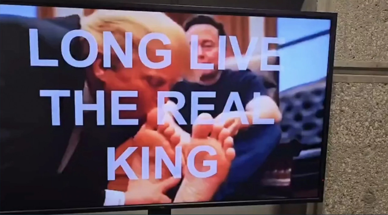 Χάκερ πρόβαλαν το A.I. βίντεο με τον Τραμπ στα πόδια του Έλον Μασκ σε διαδρόμους υπουργείου με τη λεζάντα Ζήτω Ο Αληθινός Βασιλιάς. Αντίποινα στην επέλαση των DOGE;