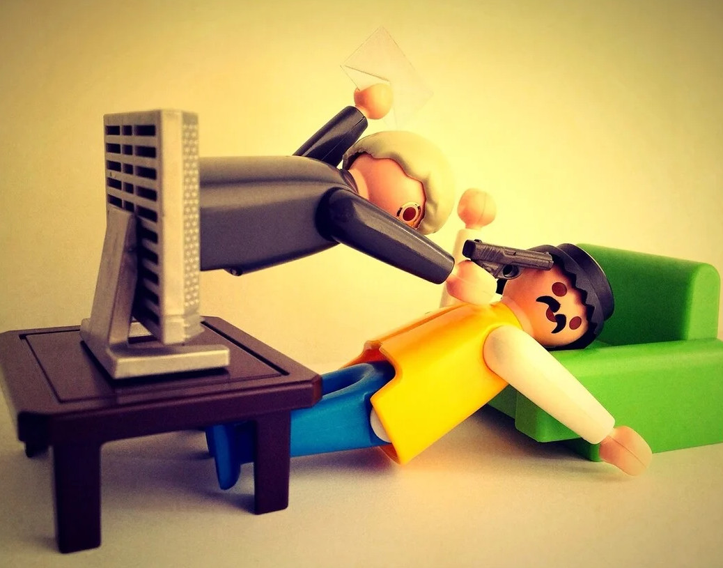 Η επιλογή του να χρησιμοποιήσει τα παιχνίδια ως σύμβολα έφερε αντιδράσεις από την εταιρεία της Playmobil.