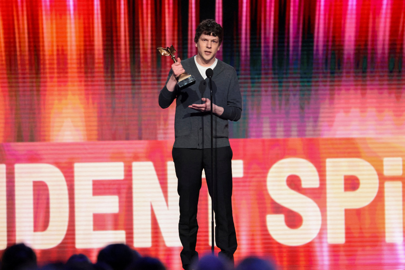 Ο Τζέσι Άιζενμπεργκ παραλαμβάνει το βραβείο καλύτερου σεναρίου για την ταινία «A Real Pain» κατά τη διάρκεια της 40ης απονομής των Film Independent Spirit Awards στη Σάντα Μόνικα της Καλιφόρνιας, στις 22 Φεβρουαρίου 2025. REUTERS/Mario Anzuoni