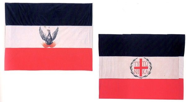 Όπως αναφέρει ο ιστορικός Ιωάννης Φιλήμονας , στο «Δοκίμιον Ιστορικόν Περί Της Ελληνικής Επαναστάσεως», τη συγκεκριμένη μορφή σημαίας την είχε προτείνει ο αδερφός του Αλέξανδρου Υψηλάντη, επίσης Φιλικός, Νικόλαος Υψηλάντης.