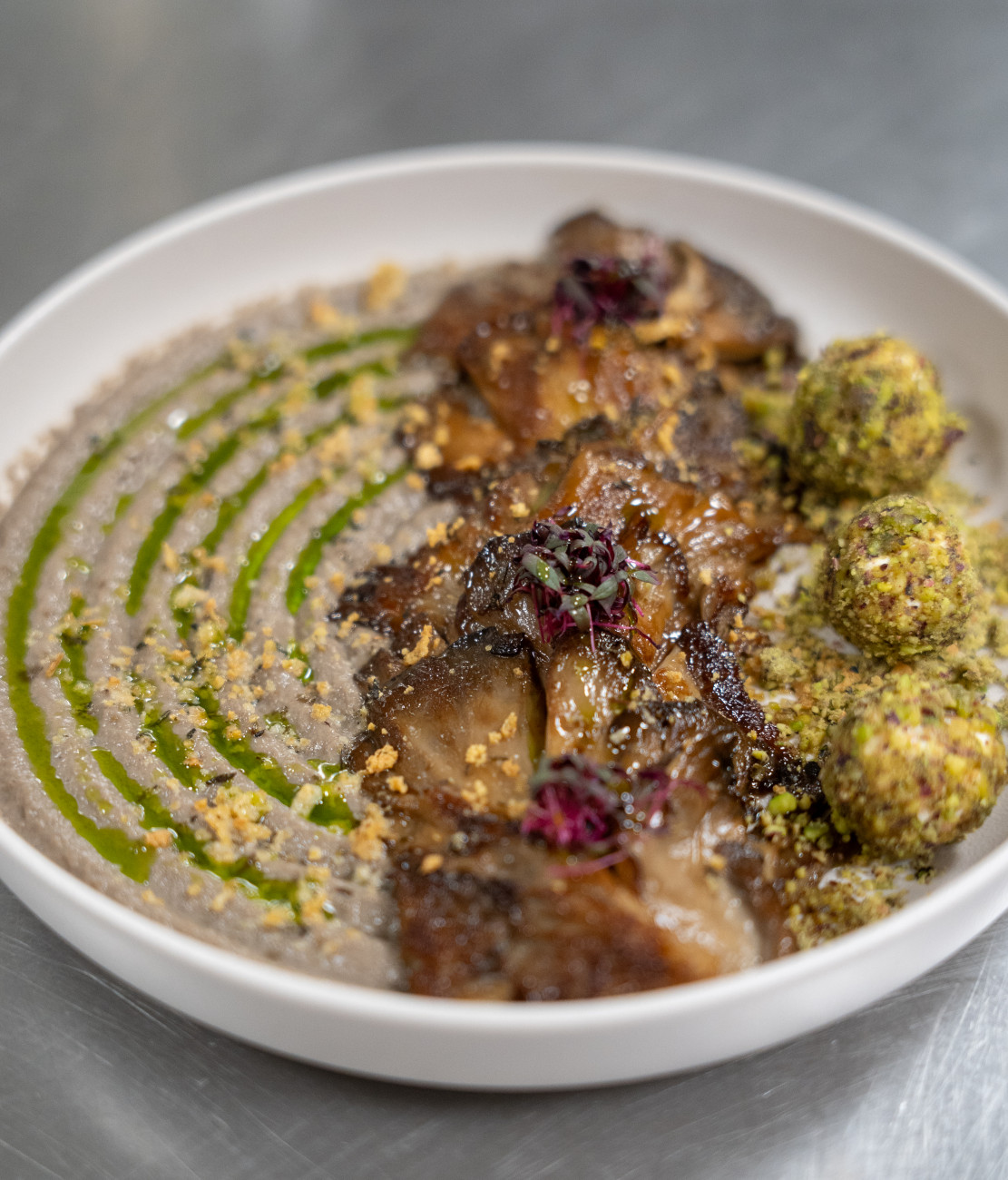 Πέρλες από κατσικίσιο τυρί Ηπείρου παναρισμένες σε φυστίκια Αιγίνης και crumble λεμονιού με θυμάρι, αλλά και οι ευφάνταστες σαλάτες όπως το «παντζάρι τριλογία» από κόκκινο, κίτρινο, πορτοκαλί παντζάρι με κρέμα από κατσικίσιο τυρί Ηπείρου και η burrata με ντοματίνι, τραγανή baby ρόκα, καραμελωμένα φουντούκια, φρέσκια μοτσαρέλα και χειροποίητο πέστο βασιλικού.