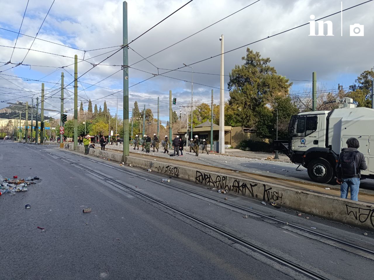 Τα πλάνα αδιάψευστος μάρτυρας αφήνουν και πάλι έκθετο το αρμόδιο υπουργείο που αφού πρώτα έπνιξε με χημικά την πλατεία Συντάγματος και τους δρόμους πλησίον επιστράτευσε τόνους νερό για να «καθαρίσει» τους δρόμους, μάταια.