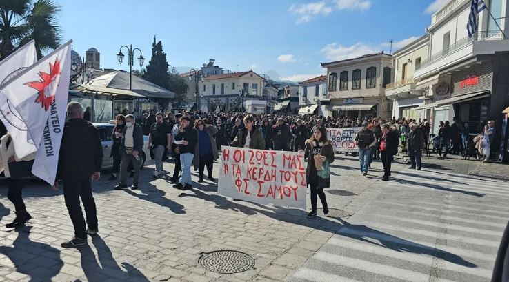 Με δυο μαζικές συγκεντρώσεις, μια στην κεντρική πλατεία Πυθαγόρα και μια στην πλατεία Καρλοβασίου, οι Σαμιώτες σήμερα διαδήλωσαν ζητώντας να αποδοθούν ευθύνες για την τραγωδία των Τεμπών.