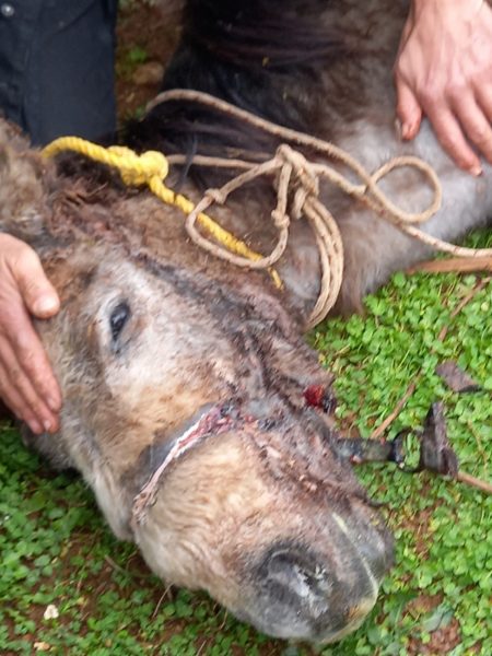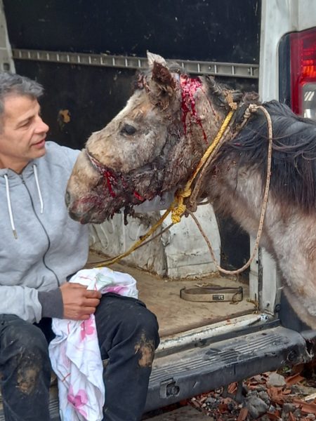 Συμπονούμε τη φοραδίτσα για τον οξύ πόνο της και συμπαραστεκόμαστε στους εθελοντές