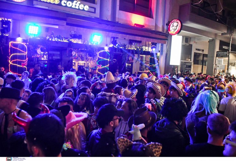Εν αναμονή της μεγάλης παρέλασης το βράδυ της Κυριακής της Αποκριάς, στην Πάτρα, ο κόσμος διασκέδασε ξέφρενα όλη τη νύχτα σε δρόμους, πλατείες, μπαρ, καφέ και εστιατόρια