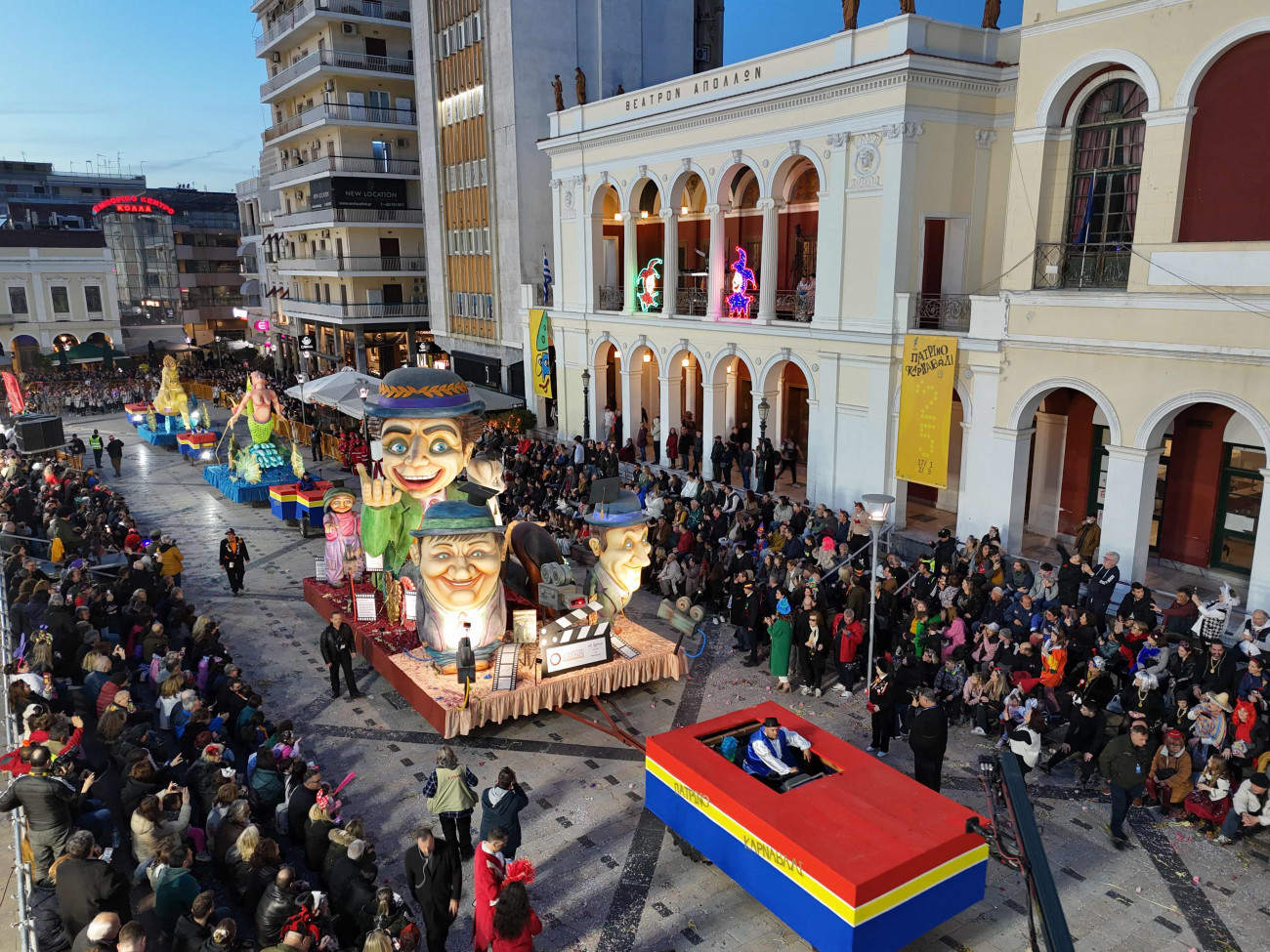 Άρμα με τον Αρλεκίνο της Αποκριάς στο πλαίσιο των καρναβαλικών εκδηλώσεων στην Πάτρα το βράδυ του Σαββάτου