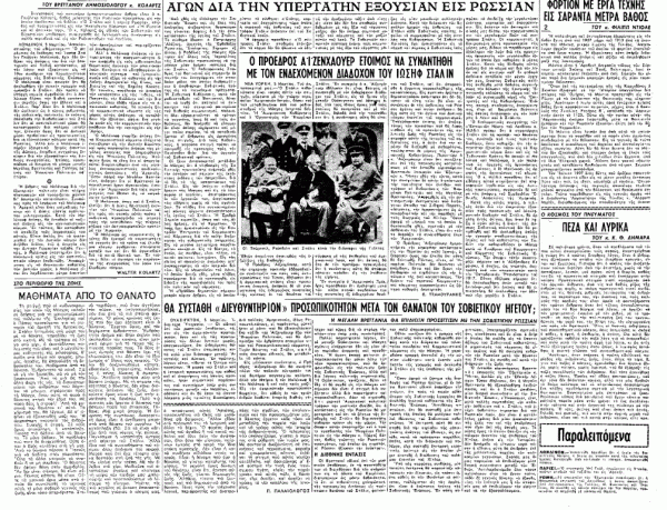 Παγκόσμια η κατάπληξη εμπρός στο φέρετρο του Στάλιν. Αλλά ίδια και τα συναισθήματα του κόσμου όλου απέναντι του νεκρού. Μορφή που επί ένα τέταρτο αιώνα δεσπόζει στη ζωή της γης. Με την ειρήνη στην τσέπη. Με τον όλεθρο στο χέρι. Μειδιούσε και αναπνέαμε· αγρίευε και κλαίγαμε τη μοίρα των παιδιών μας· μπλοφάριζε και προσπαθούσαμε να λύσουμε το αίνιγμα. Ηγέτης της πιο μεγάλης σε έκταση επαναστάσεως που γνώρισε ο κόσμος μας, ο τετράγωνος αυτός Ασιάτης, προσκυνήθηκε σα Θεός και μισήθηκε σα δαίμονας. Άλλοι είδαν στο πρόσωπό του το λυτρωτή και άλλοι το δήμιο. Ο φορέας όμως αυτός του αγαθού ή του κακού πεθαίνει και όλοι όσοι τον αγάπησαν, όλοι όσοι τον μίσησαν, παίρνουν εμπρός στο νεκρό την ίδια στάση προσοχής. Δεν είναι η κατά συνθήκην ευλάβεια στους νεκρούς. Είναι η δύναμη που έχει ο θάνατος να γίνεται καταλυτής του μίσους. Η μεγάλη όμως δύναμη του θανάτου είναι ότι, άρνηση αυτός της ζωής, γίνεται δημιουργός ζωής.