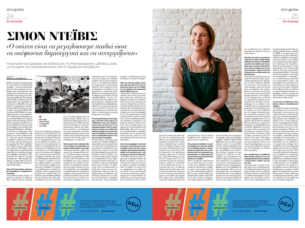 Συνεντεύξεις : Μιλάμε με την Αλάνα Πορτέρο, την ισπανίδα συγγραφέα και την Σιμόν Ντεϊβις, την Αυστραλή συγγραφέα και παιδαγωγό της Μοντεσσοριανής Σχολής.