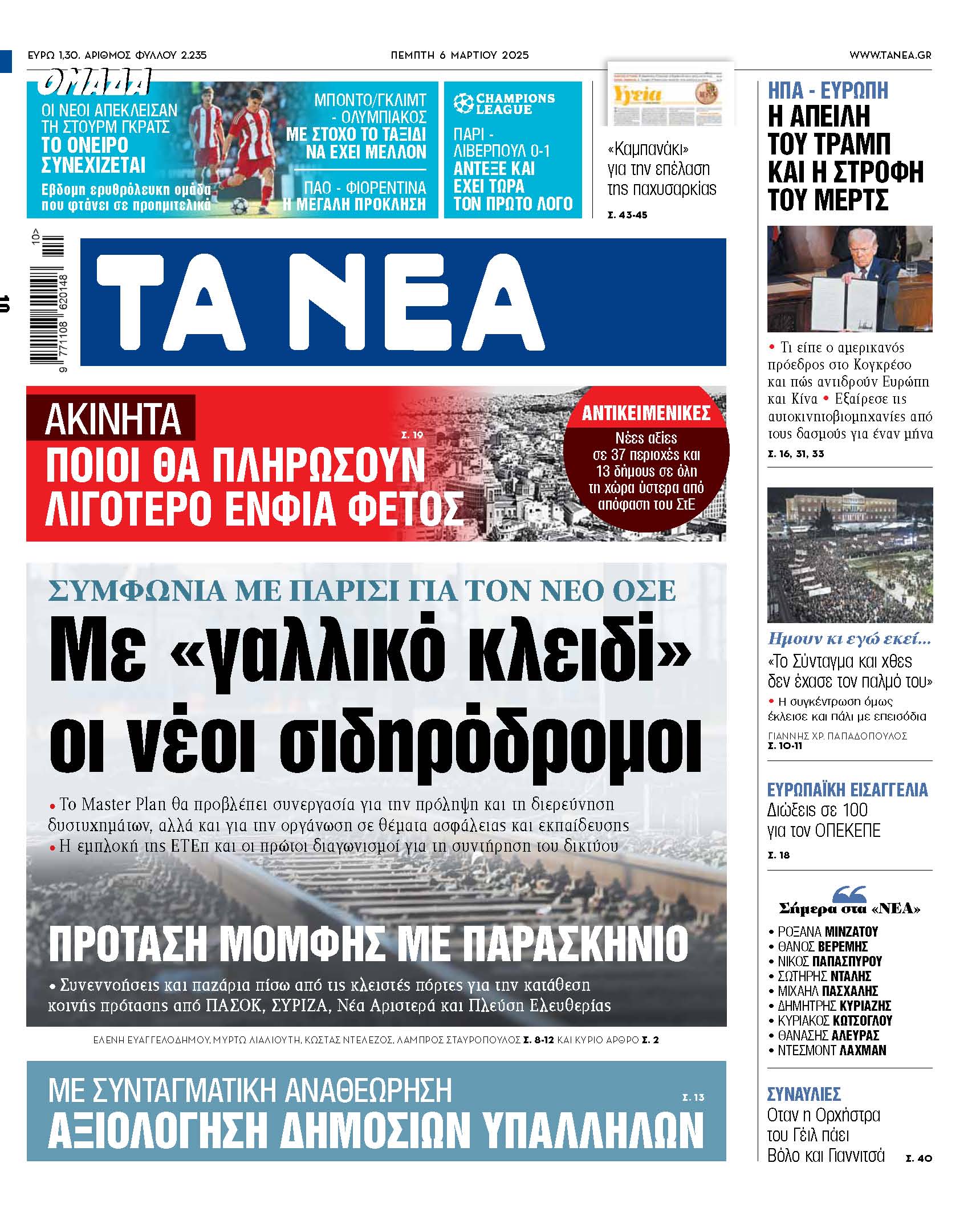 Στα «ΝΕΑ» της Πέμπτης: Με «γαλλικό κλειδί» οι νέοι σιδηρόδρομοι