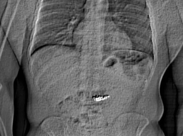 Η αστυνομία έδωσε αργότερα στη δημοσιότητα μια ακτινογραφία που φαινόταν να δείχνει την κοιλιά ενός ατόμου με ένα ξένο αντικείμενο στο εσωτερικό της.