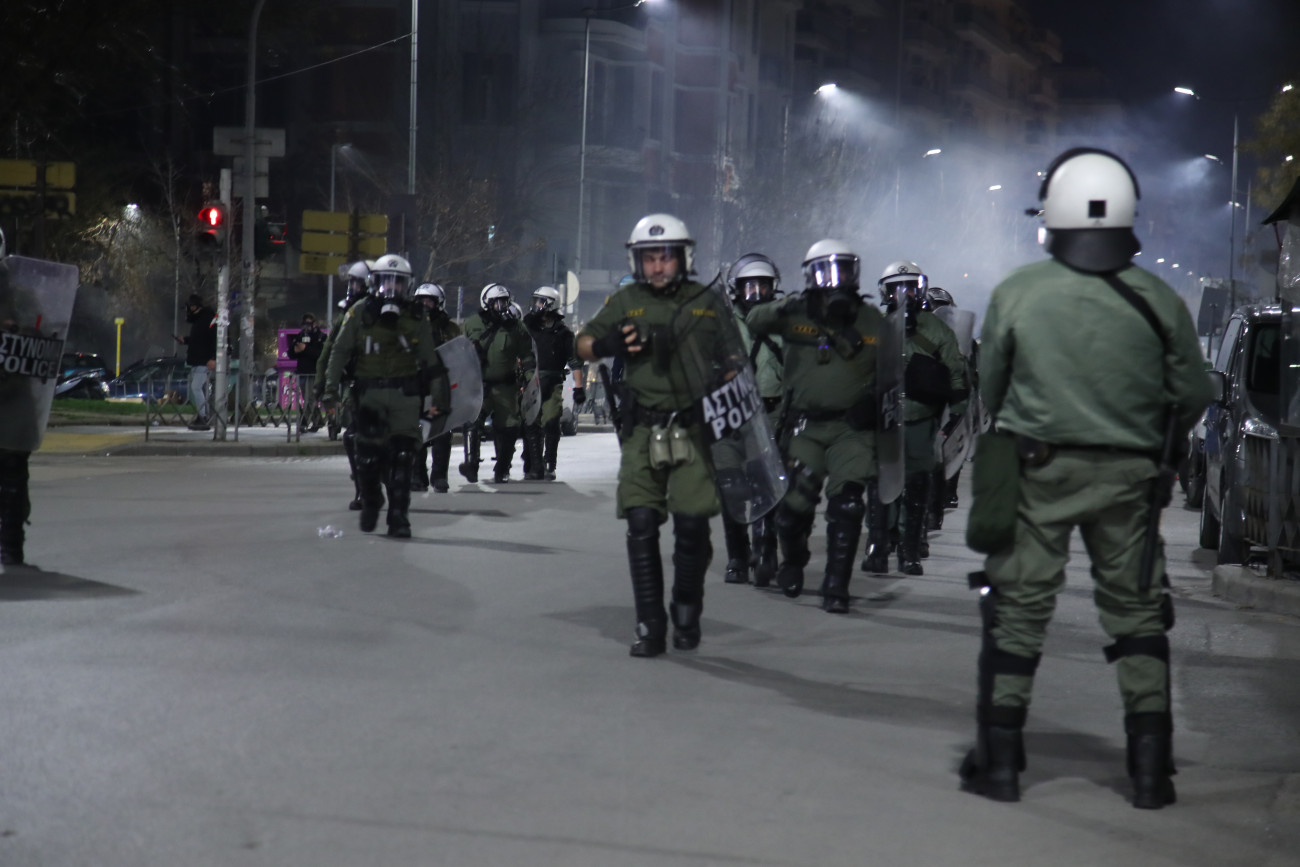 Ένταση μεταξύ δυνάμεων της αστυνομίας και αγνώστων επικράτησε για λίγη ώρα στο κέντρο της Θεσσαλονίκης, μετά από την πορεία για την τραγωδία στα Τέμπη.