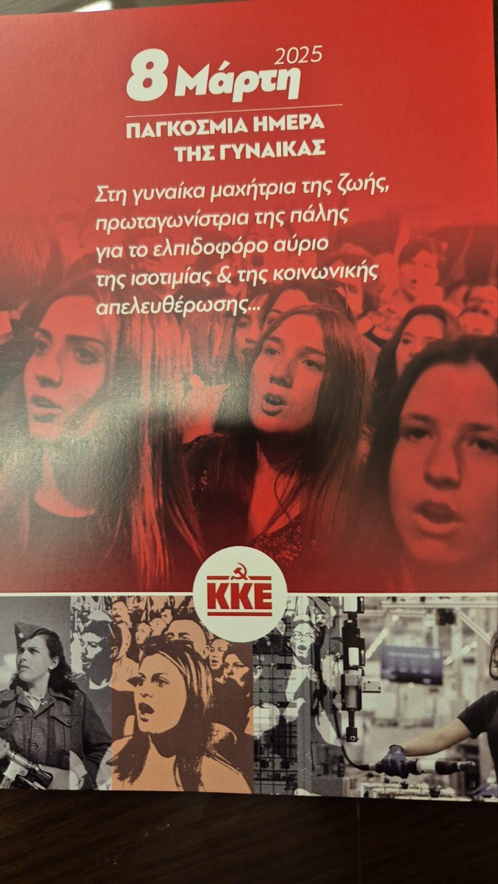 Να σημειωθεί ότι η Κεντρική Επιτροπή του ΚΚΕ διοργανώνει εκδήλωση για την Παγκόσμια Ημέρα της Γυναίκας την Δευτέρα 10 Μαρτίου στις 19.30, στην αίθουσα συνεδρίων της ΚΕ του ΚΚΕ στον Περισσό, όπου θα παρουσιαστεί, για πρώτη φορά σε αυτή τη μορφή, το ορατόριο «Καλάβρυτα 1943 – Ύμνος στην Καλαβρυτινή Γυναίκα».