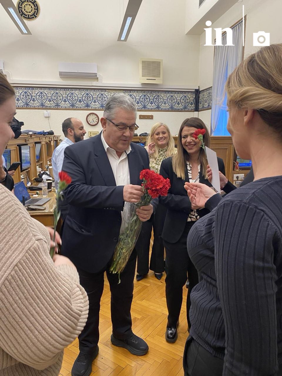 Κουτσούμπας: Προσέφερε λουλούδια στις κοινοβουλευτικές συντάκτριες για την Ημέρα της Γυναίκας