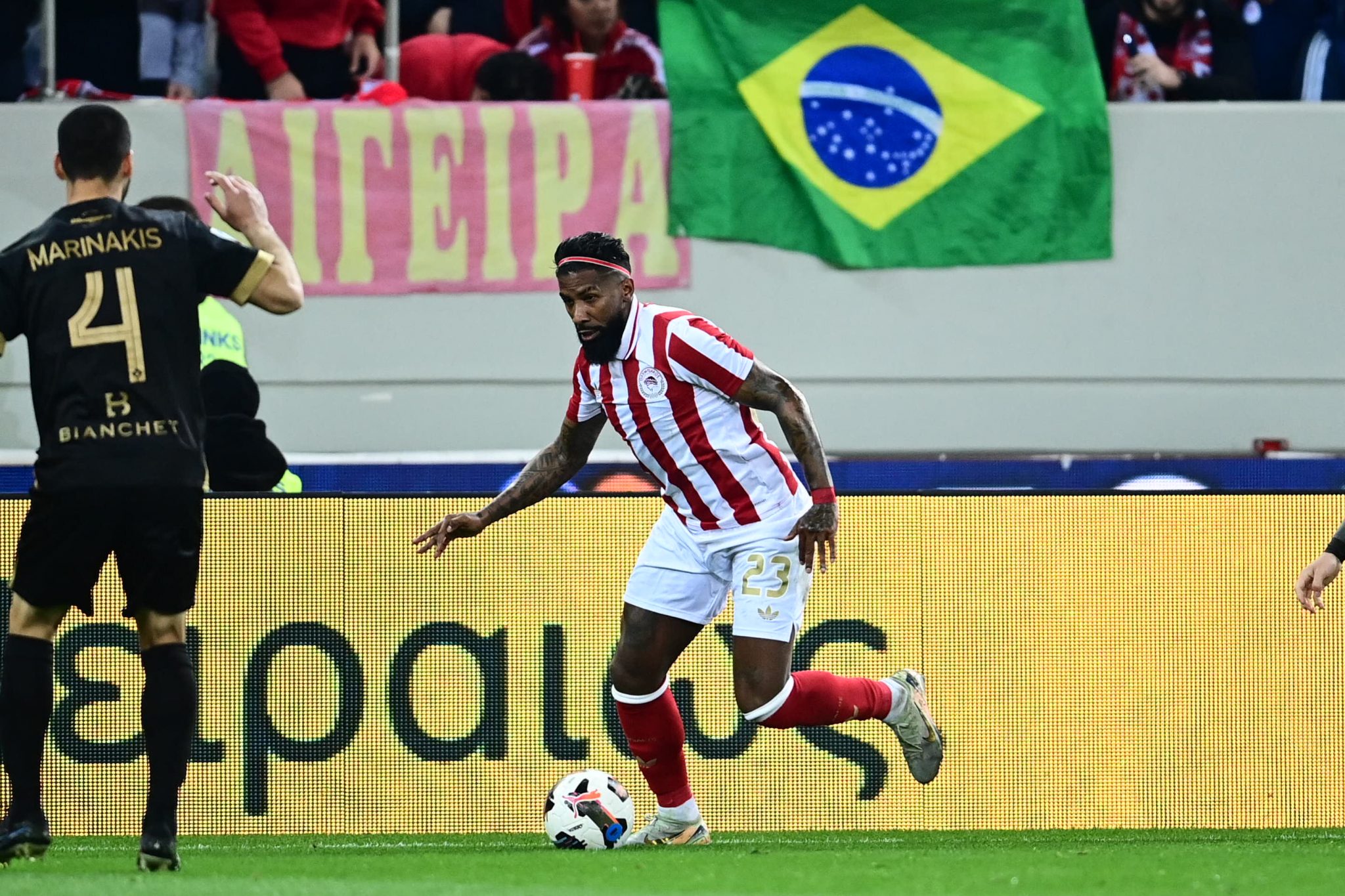Ο Βραζιλιάνος μπακ, σκόραρε χτες το γκολ που έδωσε τη νίκη στους Πειραιώτες, στο ιστορικό ματς κόντρα στον ΟΦΗ και το πανηγύρισε με τους συμπαίκτες του, φορώντας την συλλεκτική ερυθρόλευκη και ριγωτή φανέλα.