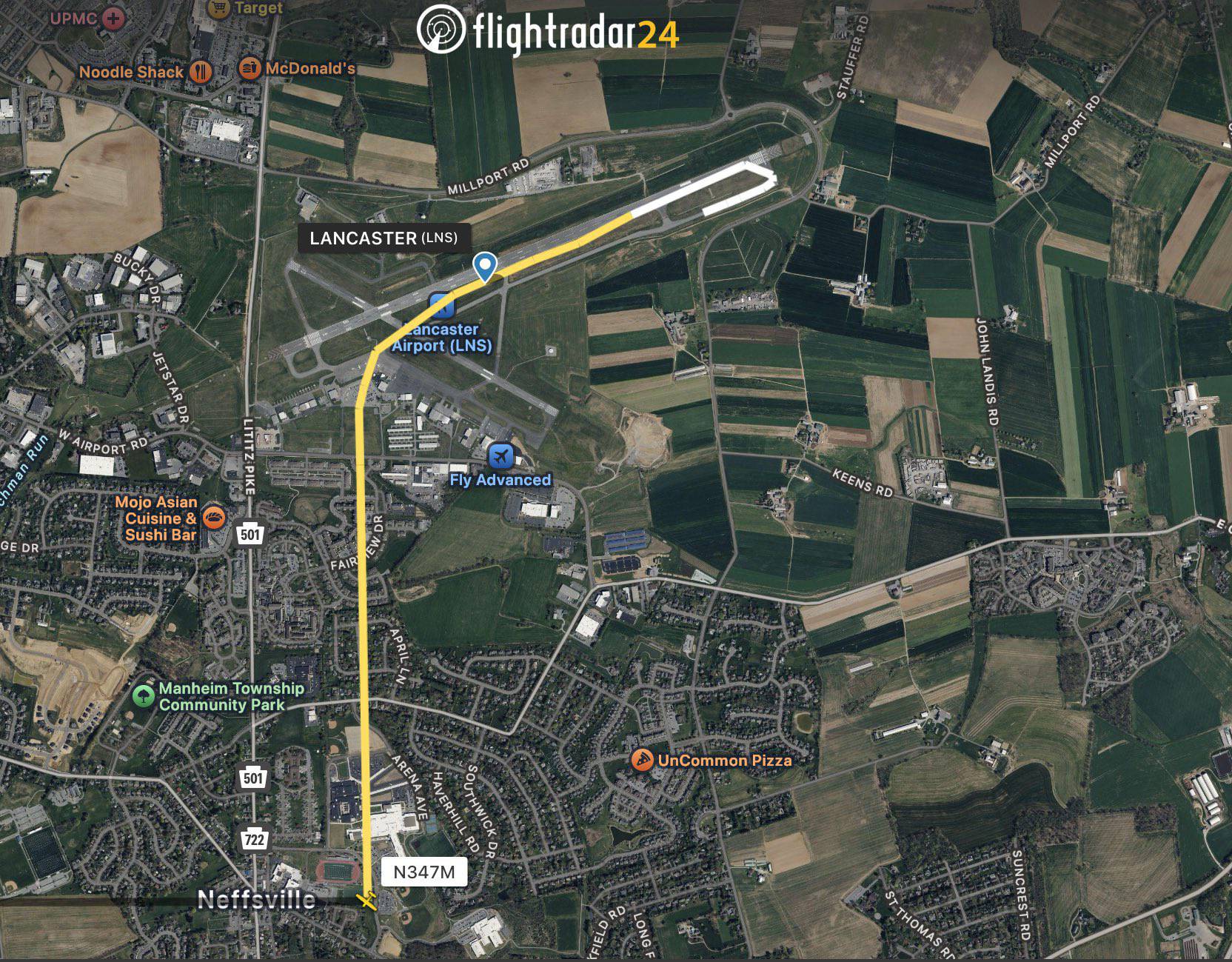 Το αεροσκάφος στο οποίο επέβαιναν πέντε άτομα κατέπεσε νότια του αεροδρομίου Λάνκαστερ, στην Πενσυλβάνια.