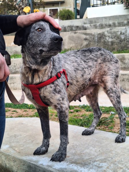 Τη φιλοξενεί εθελόντρια, μαζί με άλλα σκυλάκια και έχει «ξεδιπλώσει» έναν αξιολάτρευτο χαρακτήρα. Η σχέση της με τα παιδιά είναι άριστη, όπως και με τους ενήλικες, αλλά και με τις γάτες και τους ομοίους της.