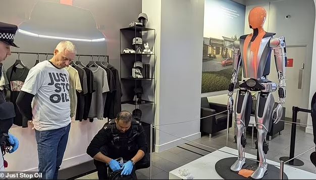 Ακτιβιστές της «Just Stop Oil» έβαλαν στο στόχαστρο το ρομπότ Optimus (σ.σ. Optimus Prime το ρομπότ των Τρανσφόρμερς, έλλειψη φαντασίας) του Έλον Μασκ στον εκθεσιακό χώρο Tesla του Γουέστφιλντ, κατηγορώντας τον δισεκατομμυριούχο ότι είναι «φασίστας».