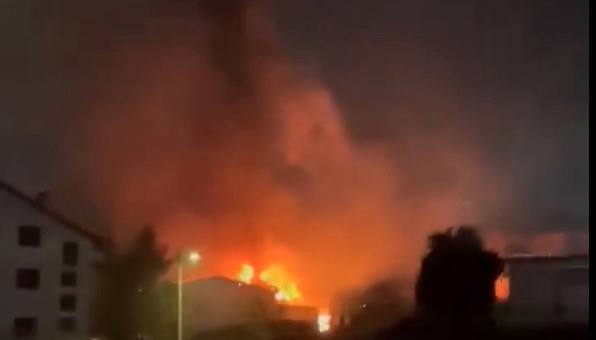 Η στιγμή που ξεκίνησε η πυρκαγιά στο κέντρο διασκέδασης.