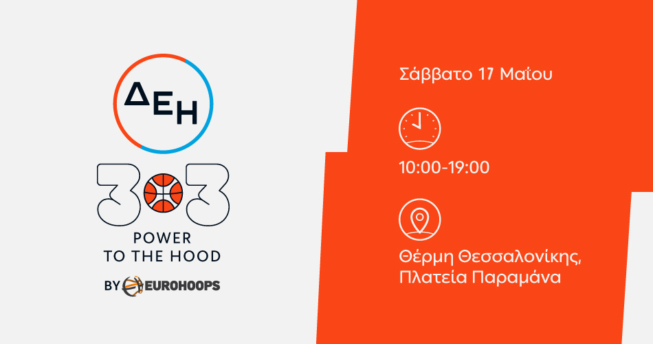 Η μεγάλη μπασκετική γιορτή ΔΕΗ 3×3 POWER TO THE HOOD by Eurohoops «ταξιδεύει» και επιστρέφει στη Θεσσαλονίκη, φέρνοντας το μπάσκετ στην «καρδιά» κάθε γειτονιάς! Η πρώτη «στάση» στη συμπρωτεύουσα για το 2025, είναι η Θέρμη, όπου το Σάββατο 17 Μαΐου η Πλατεία Παραμάνα θα μετατραπεί σε ένα υπαίθριο μπασκετικό hotspot. Μικροί και μεγάλοι θα έχουν την ευκαιρία να ζήσουν μία μοναδική, αθλητική εμπειρία, με συναρπαστικούς αγώνες 3×3 και παράλληλες ψυχαγωγικές δραστηριότητες για κάθε ηλικία, σε μία ατμόσφαιρα γεμάτη με μπασκετική ενέργεια!