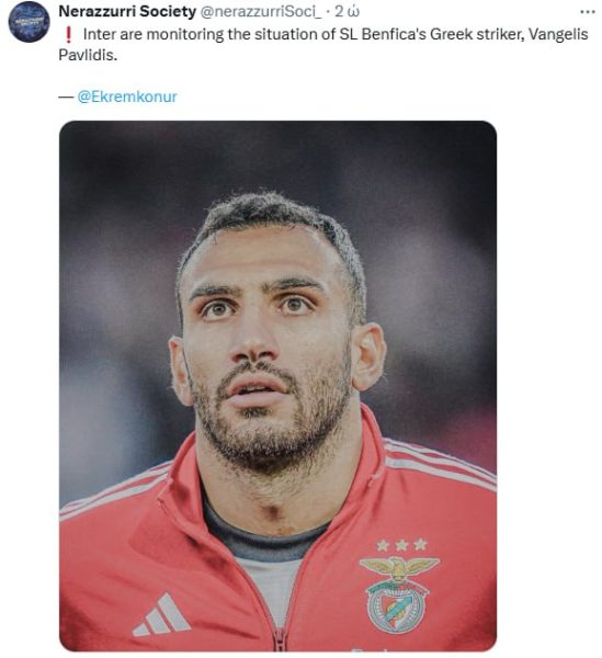 Επομένως ο Παυλίδης είναι μια πρόταση, αλλά πέρα από τη Γιουβέντους και η πρωταθλήτρια Ίντερ, όπως επιβεβαιώνει και λογαριασμός των «νερατζούρι» στο X παρακολουθεί την κατάσταση του Παυλίδη.