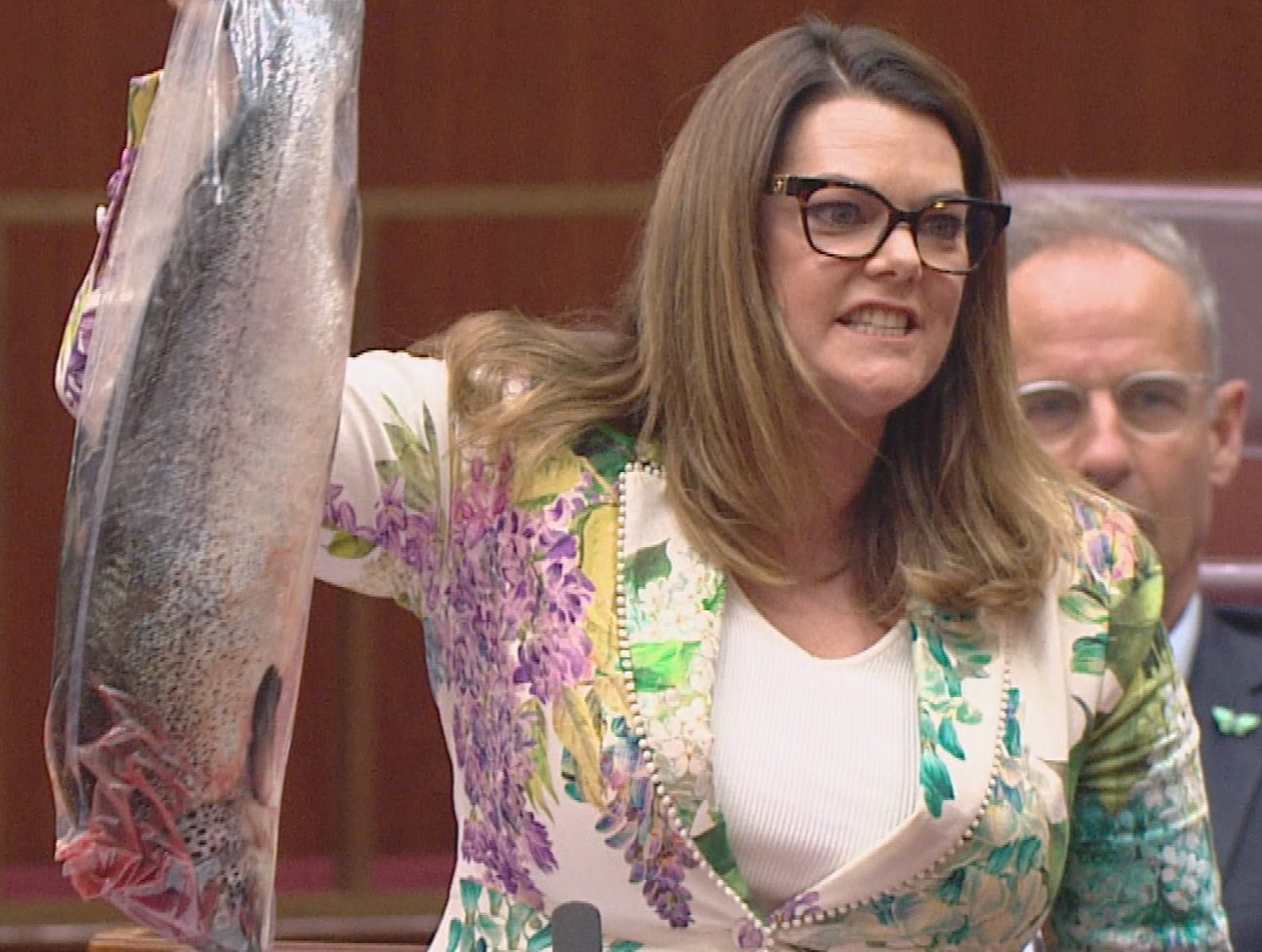 Η γερουσιαστής των Πρασίνων, Σάρα Χάνσον-Γιανγκ, εμφανίστηκε στο κοινοβούλιο και κατά τη διάρκεια της ομιλίας της έβγαλε έναν νεκρό σολομό. Η ίδια κατηγόρησε το Εργατικό Κόμμα ότι πρόδωσε τις περιβαλλοντικές του αρχές.