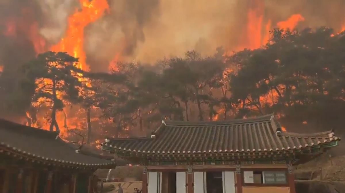 Οι πύρινες φλόγες κατέστρεψαν τον ναό Γκουν στο Ουισέονγκ, έναν αρχαίο ναό που χτίστηκε το 681 κατά τη διάρκεια της δυναστείας Σίλα (57 π.Χ. – 935 μ.Χ.). Οι εθνικοί θησαυροί που φυλάσσονταν στο ναό είχαν μεταφερθεί σε άλλες τοποθεσίες.