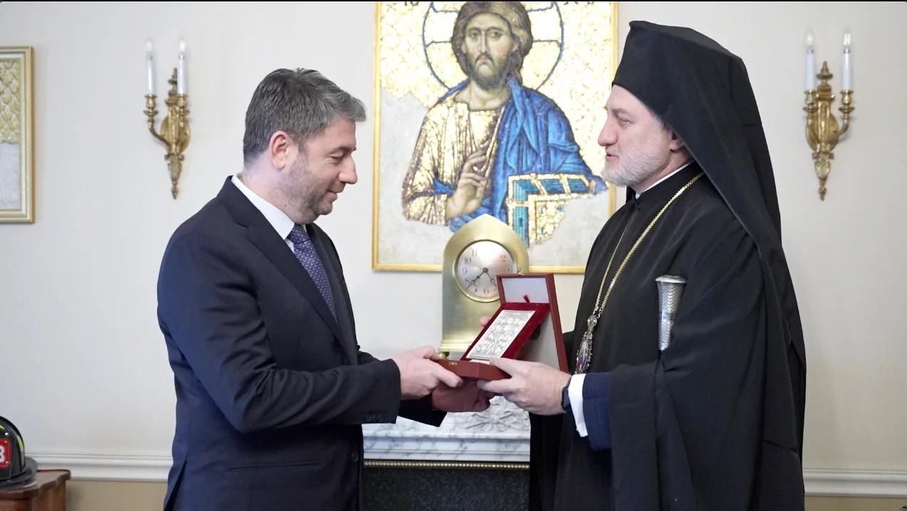Ο Νίκος Ανδρουλάκης και ο Αρχιεπίσκοπος Αμερικής ανταλλάσσουν δώρα
