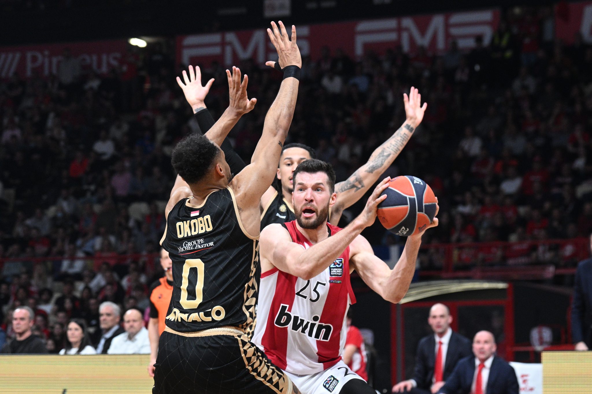 Οι Πειραιώτες είχαν ηττηθεί πριν από δύο αγωνιστικές στο ΣΕΦ από τον Ερυθρό Αστέρα με 81-73 και την περασμένη στροφή (31η) στην Γαλλία από την Βιλερμπάν με 81-70. Σήμερα, η ομάδα του μεγάλου λιμανιού ηττήθηκε από την Μονακό του Βασίλη Σπανούλη στο Στάδιο Ειρήνης και Φιλίας, με τον Ολυμπιακό να κινδυνεύει πλέον να χάσει την πρώτη θέση.