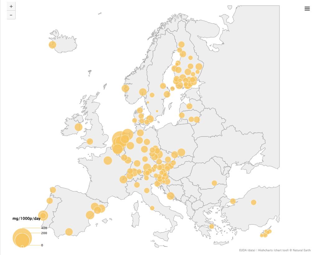 Η χρήση κοκαΐνης παραμένει υψηλότερη στις πόλεις της δυτικής και νότιας Ευρώπης, με το Βέλγιο, την Ολλανδία και την Ισπανία να αναφέρουν τα υψηλότερα ποσοστά.