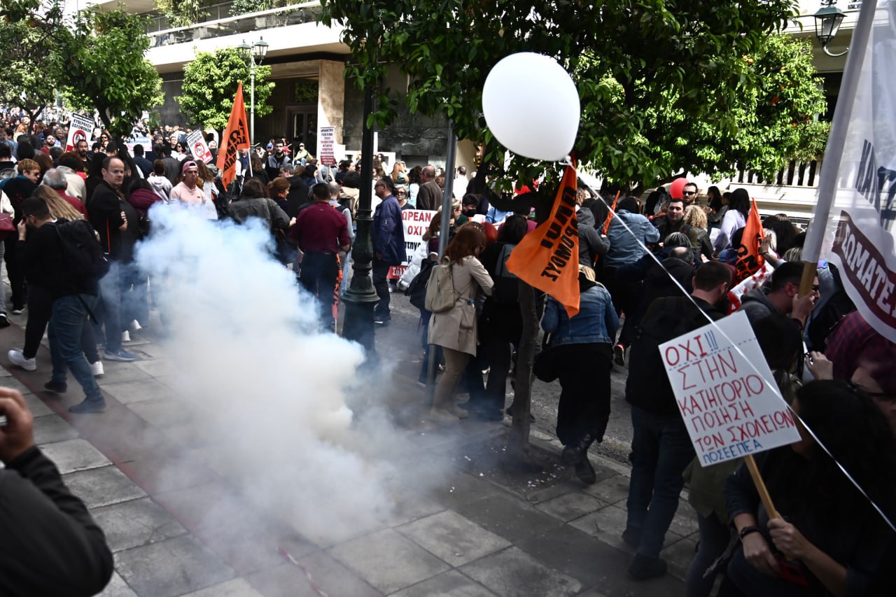 Ένταση σημειώθηκε στο πανεκπαιδευτικό συλλαλητήριο στο κέντρο της Αθήνας, με τα ΜΑΤ να πετάνε χημικά και να ασκούν βία εις βάρος των διαδηλωτών