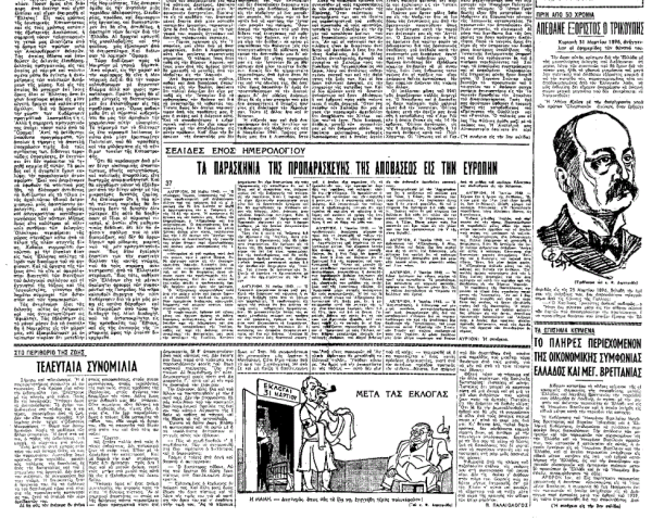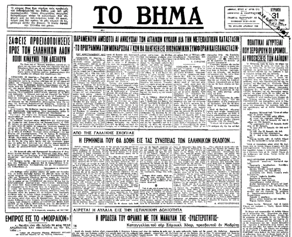 *Άρθρο του Παύλου Παλαιολόγου, που έφερε τον τίτλο «Τελευταία συνομιλία» και είχε δημοσιευτεί στην εφημερίδα «Το Βήμα» την Κυριακή 31 Μαρτίου 1946, ημέρα διεξαγωγής εθνικών εκλογών.
