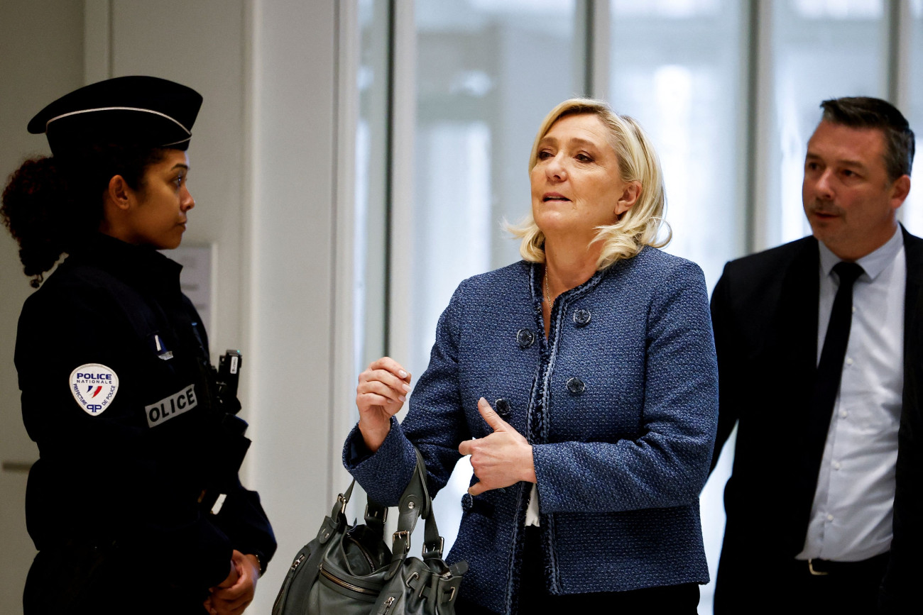 Οι εισαγγελείς ζήτησαν η επικεφαλής του ακροδεξιού Εθνικού Συναγερμού να καταδικαστεί με πενταετή στέρηση των πολιτικών της δικαιωμάτων, επικαλούμενοι το λεγόμενο μέτρο της «προσωρινής εκτέλεσης». Οι δικαστές μπορούν να υιοθετήσουν, να τροποποιήσουν ή να αγνοήσουν το αίτημα των εισαγγελέων.