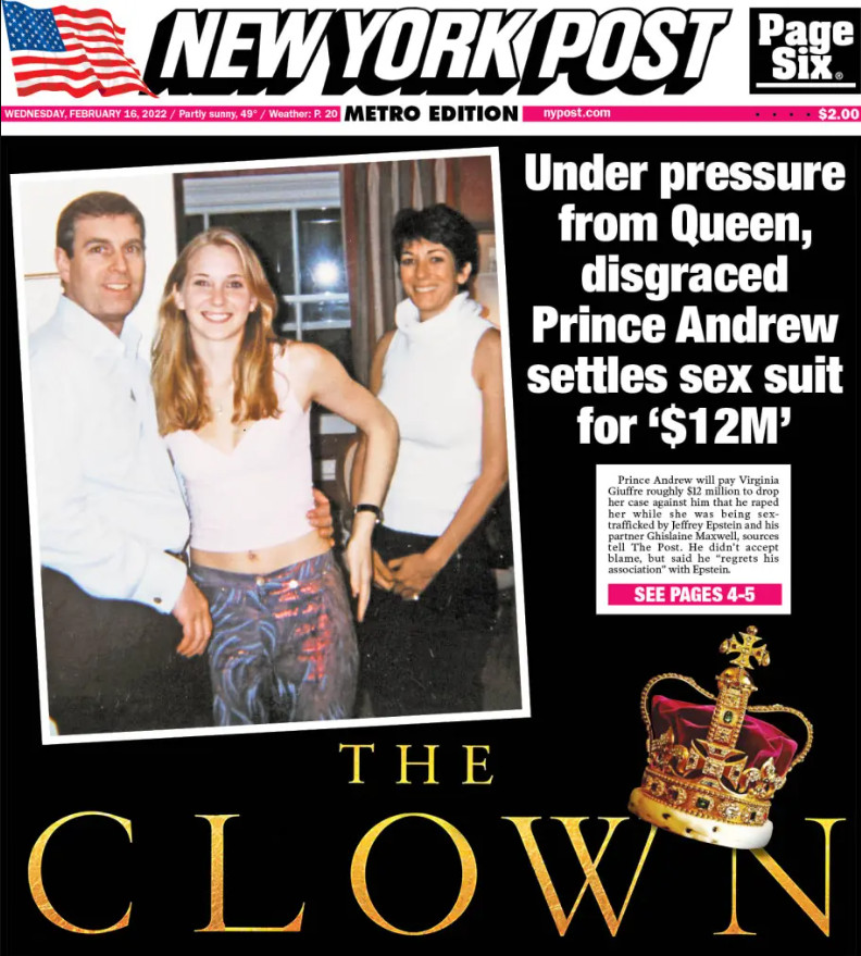Ο δούκας της Υόρκης πλήρωσε εκατομμύρια λίρες σε εξωδικαστικό συμβιβασμό για τη διευθέτηση μιας ξεχωριστής αγωγής που κατέθεσε εναντίον του η Τζιούφρε, ισχυριζόμενη ότι την κακοποίησε σεξουαλικά σε τρεις περιπτώσεις -μία στο Λονδίνο, μία στη Νέα Υόρκη και την τρίτη στο ιδιωτικό νησί του Επστάιν στην Καραϊβική.