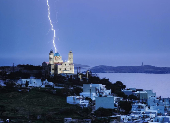 Στη Μύκονο, μέσα σε δύο ώρες έπεσαν δεκάδες κεραυνοί με τους κατοίκους να μην μπορούν να πιστέψουν στα μάτια τους.