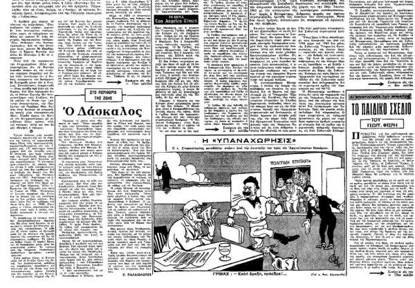Η μοίρα θέλησε να συνυπάρξουμε επί ένα διάστημα στην ίδια αυτή εφημερίδα. Ήταν πολύ μεγάλος ο όγκος του, για να χωρέση άλλος κοντά του. Ακολούθησε η διαδοχή. Ο μαθητής που σηκώνεται με δέος από το θρανίο του δημοτικού, για να καθήση σε καθηγητική έδρα. Τριάντα χρόνια πέρασαν από τότε, ο διάδοχος όμως δεν έπαυσε να κατέχεται από το τρακ της πρεμιέρας και να λυγίζη κάτω από το βάρος των συγκρίσεων.