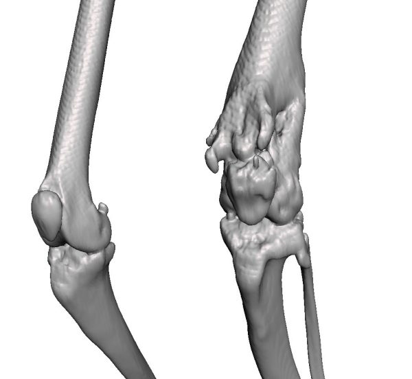 Οι ακτινολογικές εξετάσεις έδειξαν ένα παλιό, κακοφορμισμένο κάταγμα, το οποίο έχει καταστρέψει το γόνατό της, και, πλέον, δεν έχει και πατουσάκι.