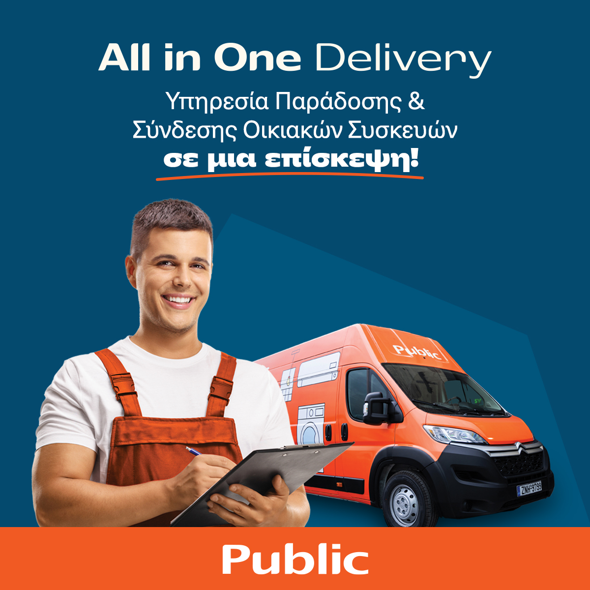Αν θέλουμε, λοιπόν, να αντικαταστήσουμε μία παλιά οικιακή συσκευή που υπάρχει στο σπίτι μας, δηλαδή ένα πλυντήριο πιάτων, πλυντήριο ρούχων ή στεγνωτήριο, μία κουζίνα, έναν φούρνο, έναν αφυγραντήρα ή απορροφητήρα, το μόνο που χρειάζεται να κάνουμε είναι να επισκεφθούμε ένα κατάστημα Public, “Public +home” ή το public.gr. Έπειτα, χάρη στην υπηρεσία AllinOne Delivery, η οποία συνδυάζει παράδοση, σύνδεση, επίδειξη, απεγκατάσταση και ανακύκλωση οικιακών συσκευών, το εξειδικευμένο συνεργείο θα αναλάβει όλες τις απαραίτητες εργασίες την ημέρα της παράδοσης και θα τις έχει ολοκληρώσει σε μία μόνο επίσκεψη.