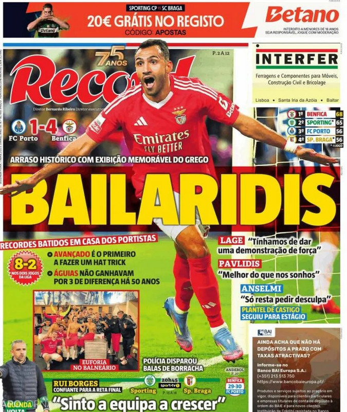 Η Record, πάντως, ήταν αυτή που κέρδισε τις εντυπώσεις αφού παρομοίασε τον Παυλίδη με χορευτή και χρησιμοποιώντας τη λέξη «baila» που σημαίνει «χορός», έφτιαξε πρωτοσέλιδο με τον 26χρονο σέντερ φορ και το ευφάνταστο «Bailaridis» που συνδυάστηκε τέλεια με το επίθετο του Έλληνα “κανονιέρη”. Μπορείτε να δείτε το σχετικό πρωτοσέλιδο στη σελίδα της Record.