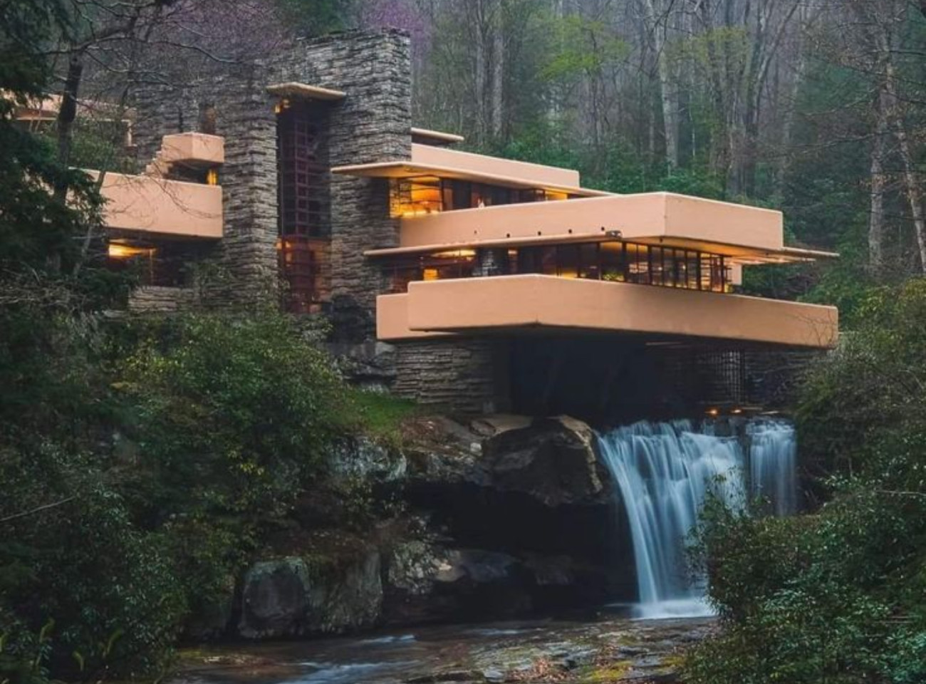 Το Fallingwater, σχεδιασμένο από τον θρυλικό αρχιτέκτονα Frank Lloyd Wright το 1935, είναι ένα αριστούργημα που ενσωματώνεται άψογα στο φυσικό του περιβάλλον.