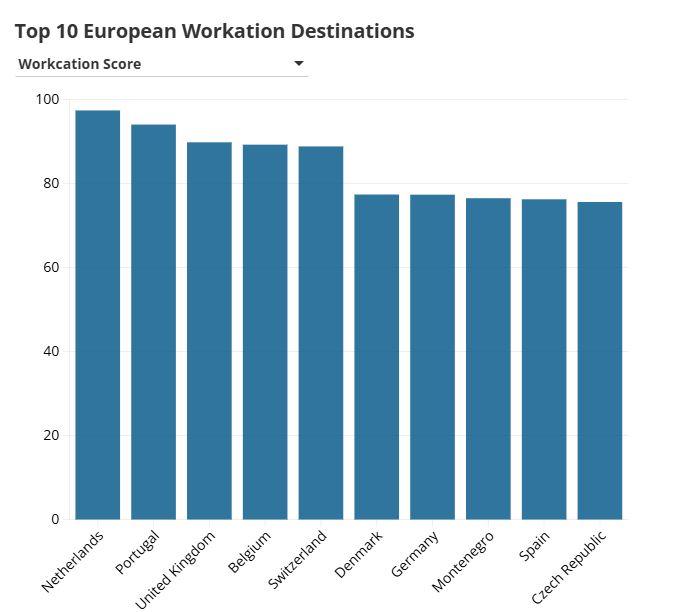 Η Ολλανδία, η Πορτογαλία και το Ηνωμένο Βασίλειο είναι οι κορυφαίοι προορισμοί στην Ευρώπη για «workation», σύμφωνα με μια νέα μελέτη.